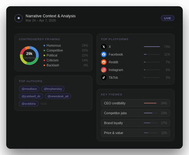 - Competitive Intelligence — Understand how narratives around competitors are forming and where they are headed.